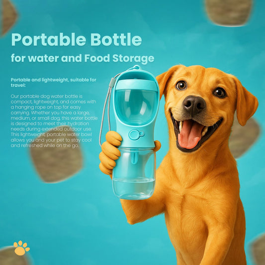 ThirstyTails™ 2-in-1 Pet Water & Food Bottle – Portable Dog & Cat Feeder for Outdoor Travel
